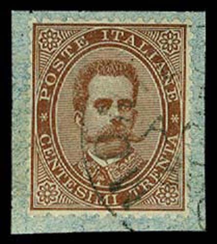 Tied on piece with a lt. HC, very sharp color, fresh and Very Fine+, a very scarce stamp used